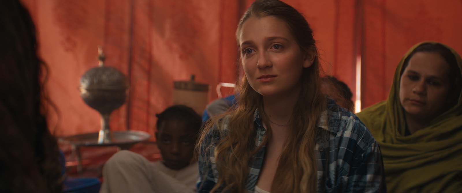 Puis son destin a changé, ce que ne raconte pas Sun dans son livre, car elle ignore la suite. Une suite que va lui révéler une ado de son âge, Kharouba (Moun Ghazali), qu’elle vient rencontrer dans un campement du Sahara à l’invitation d’une ONG. Une suite tout aussi étonnante que le récit des 12 premières années d’Hadara…