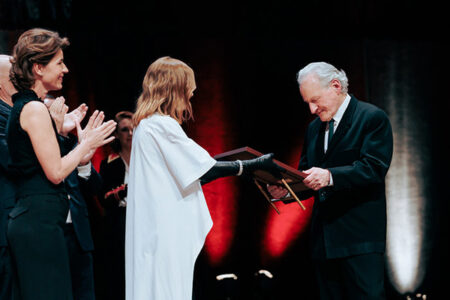 Isabelle Huppert remet le Prix Lumière à Michael Mann © Léa Rener