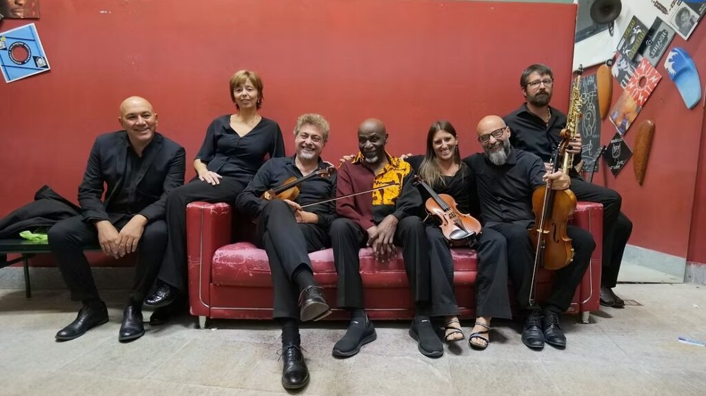 Ray Lema Il faut vivre avec les cordes pour en saisir toutes les finesses. Il y avait aussi l’écriture rythmique. J’ai travaillé avec ces magnifiques musiciens qui viennent tous de conservatoires en Italie. Ils aimaient beaucoup le morceau que j’ai intitulé « Partage« . Le nom de la formation s’est imposé naturellement.